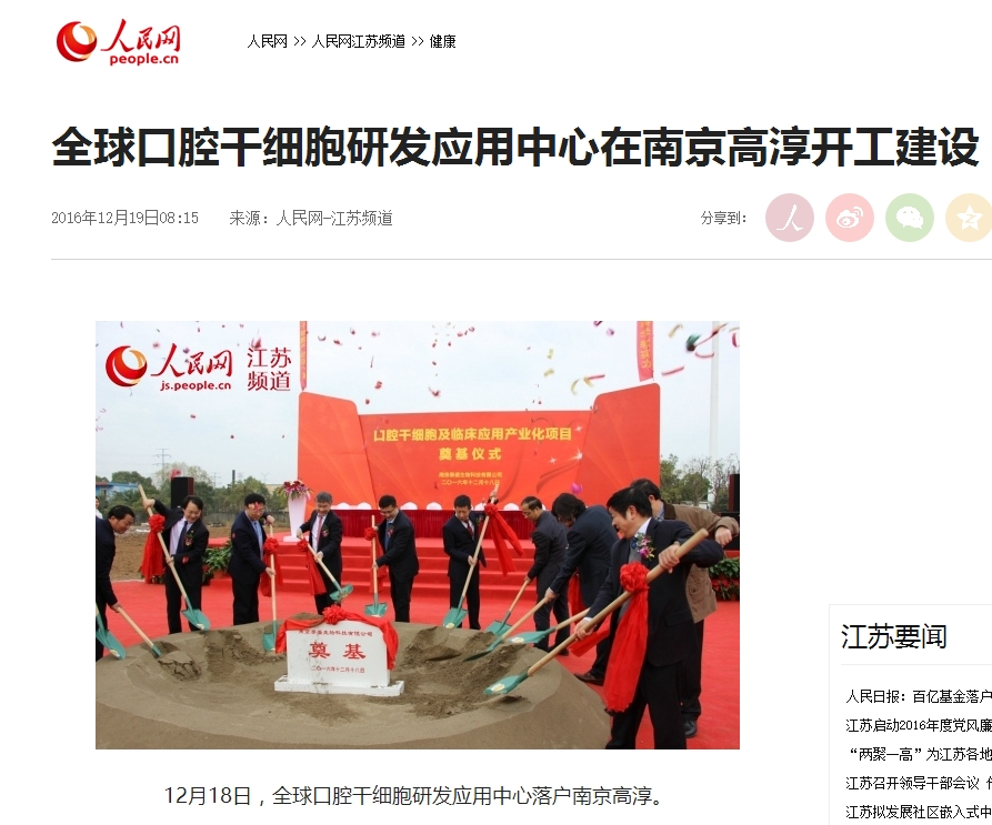 南京電視臺(tái):全球最大口腔干細(xì)胞研發(fā)應(yīng)用中心在南京開工建設(shè)