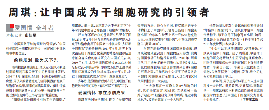 《科技日報》周琪:讓中國成為干細胞研究的引領者