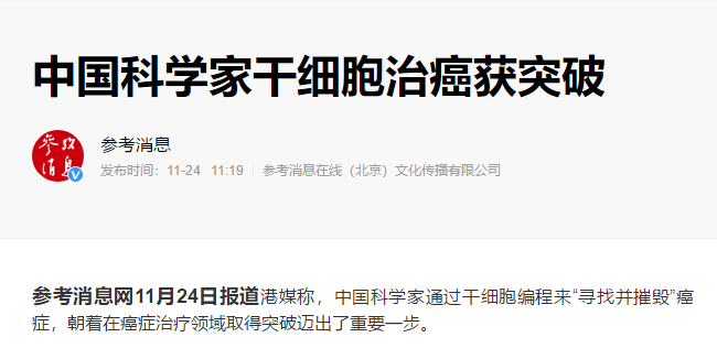 2020-02-11 查看更多參考消息網11月24日報道港媒稱,中國科學家通過干細胞編程來“尋找并摧毀”癌癥,朝著在癌癥治療領域取得突破邁出了重要一步。據…